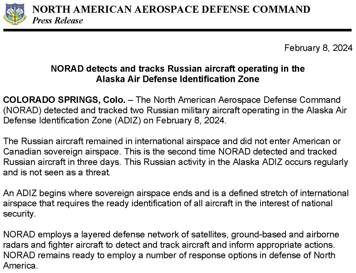 Source : www.facebook.comNorth American Aerospace Defense Command (@NORADCommand) / X